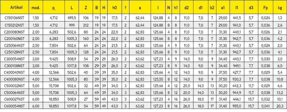 Die Verwendung von Zahnrädern auf geradverzahnten Zahnstangen der Serie NST gewährleistet schnelle, präzise und geräuscharme lineare Bewegungen in Industriemaschinen jeder Art.